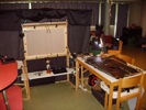 Nous avons prolongé cette découverte du théâtre d’ombres par une représentation donnée le lendemain. L’installation du castelet fut déjà en soi une attraction pour les enfants du centre de loisirs. La présence de nos enfants du même âge manipulant avec nous derrière l’écran fut une autre surprise.